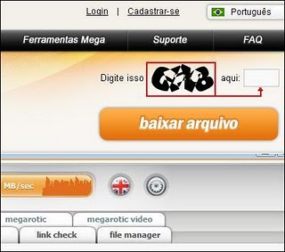 1) No lado direito na página digite o código que aparece na imagem e clique em "Baixar Arquivo":